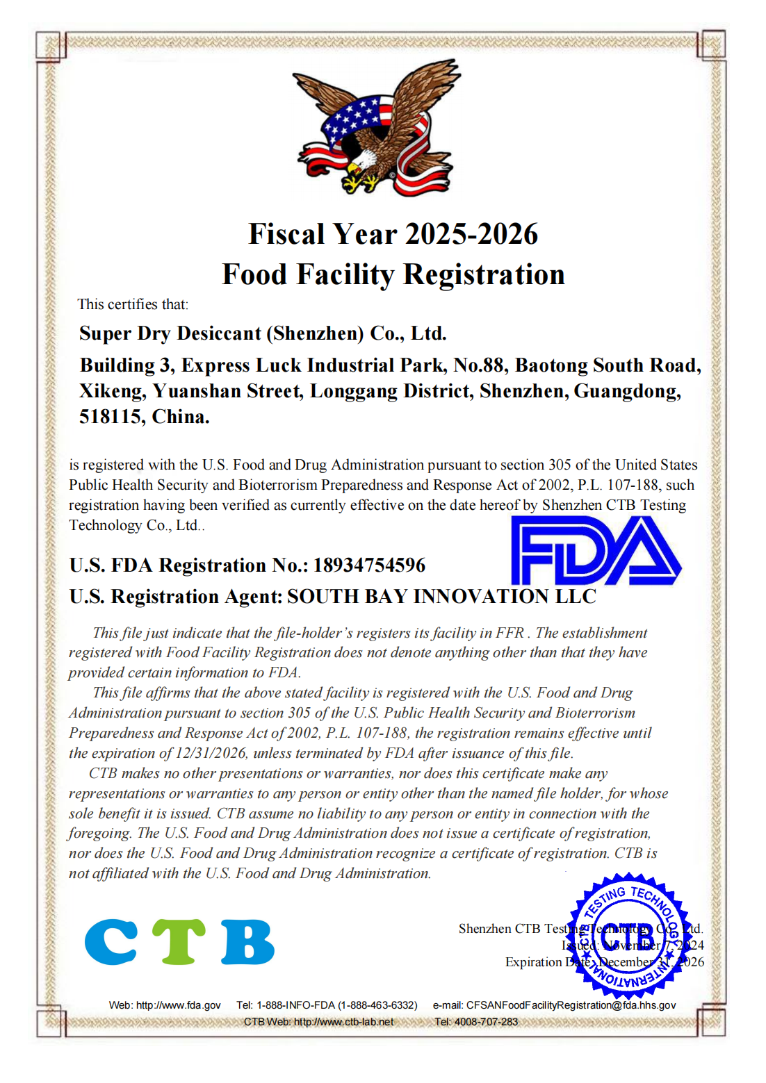 FDA证书